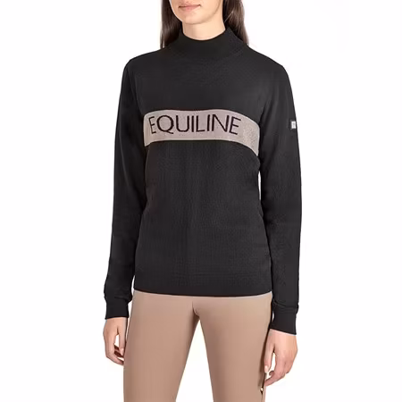 Egrae pullover från EquilineMysig pullover med polokrage, håller dig varm i stallet under kyliga höstdagar. Kommer i färgen svart med Equiline logga på bröstet