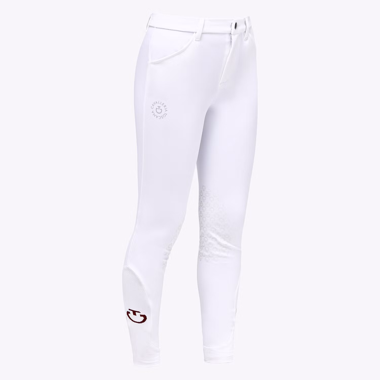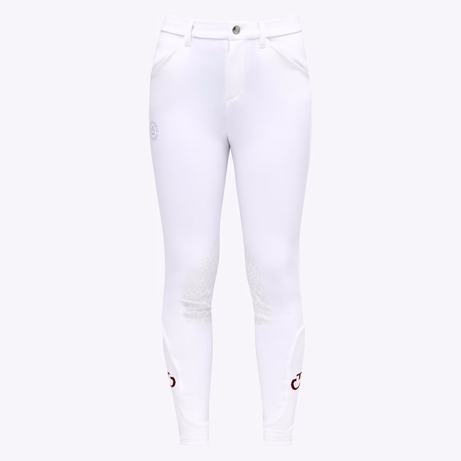 Dessa ridbyxor från Cavalleria Toscana är den perfekta blandningen av elegans och prestanda tack vare deras kombination av distinkta detaljer och funktionella konstruktion, vilket garanterar komfort och säkerhet. De är tillverkade av andningsbart, antibakteriellt fyrvägsstretchtyg och har små tydliga greppdetaljer för att säkerställa stabilitet i sadeln. Nedan på benet har stretchiga "strump"-paneler som är bekväma att bära under stövlar, dekorerade med Cavalleria Toscana-logotypen i kontrastfärg på sidan.