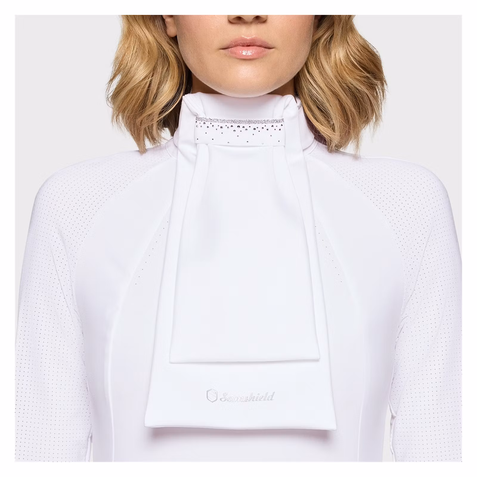 Plastron Crystal Fabricr förkroppsligar den perfekta kombinationen av tekniska egenskaper och elegans. Dess boxiga skärning ger komfort och rörelsefrihet samtidigt som den garanterar optimalt stöd. Tillverkad av andningsbart, stretchigt, slitstarkt och skrynkelfritt italienskt tyg, garanterar den prestanda och enkelt underhåll.