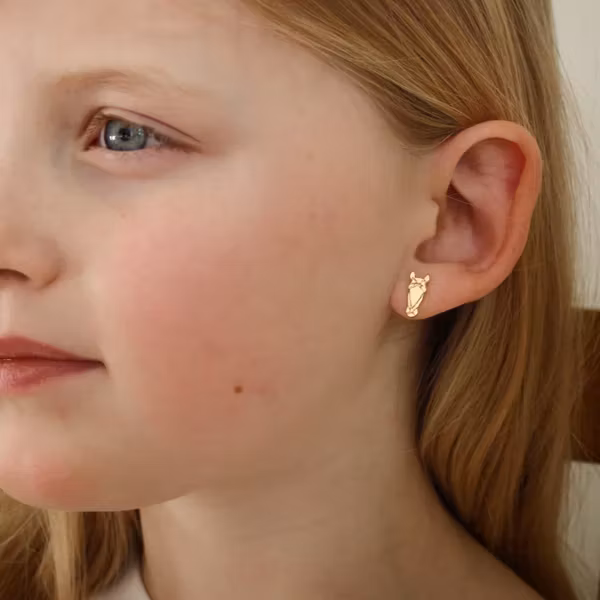 Vackra hästörhängen i 18k guldförgylld mässing och i sterling silver. Hästen är ca 1 cm lång. Passar utmärkt till den lilla ryttaren. Säljs i par