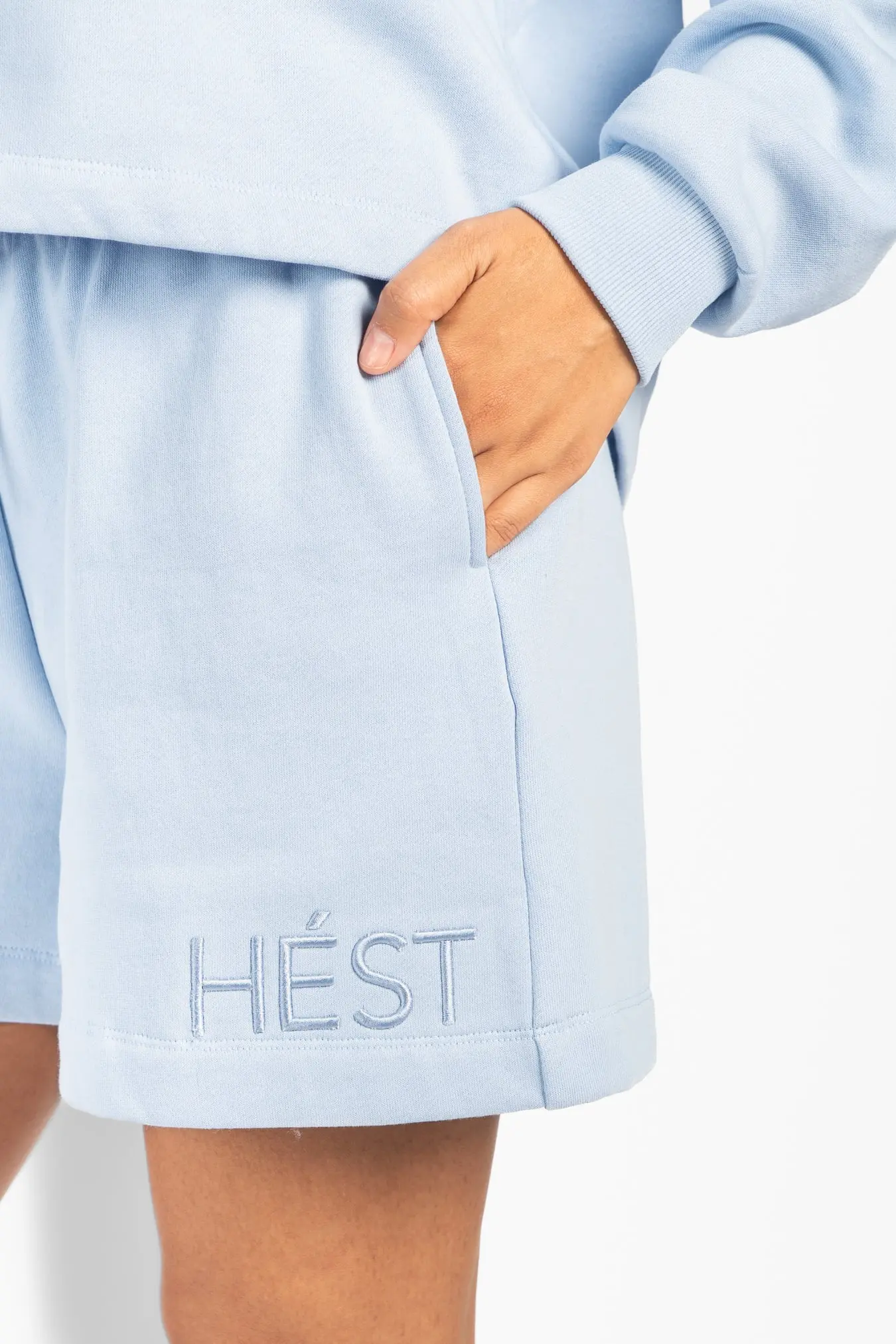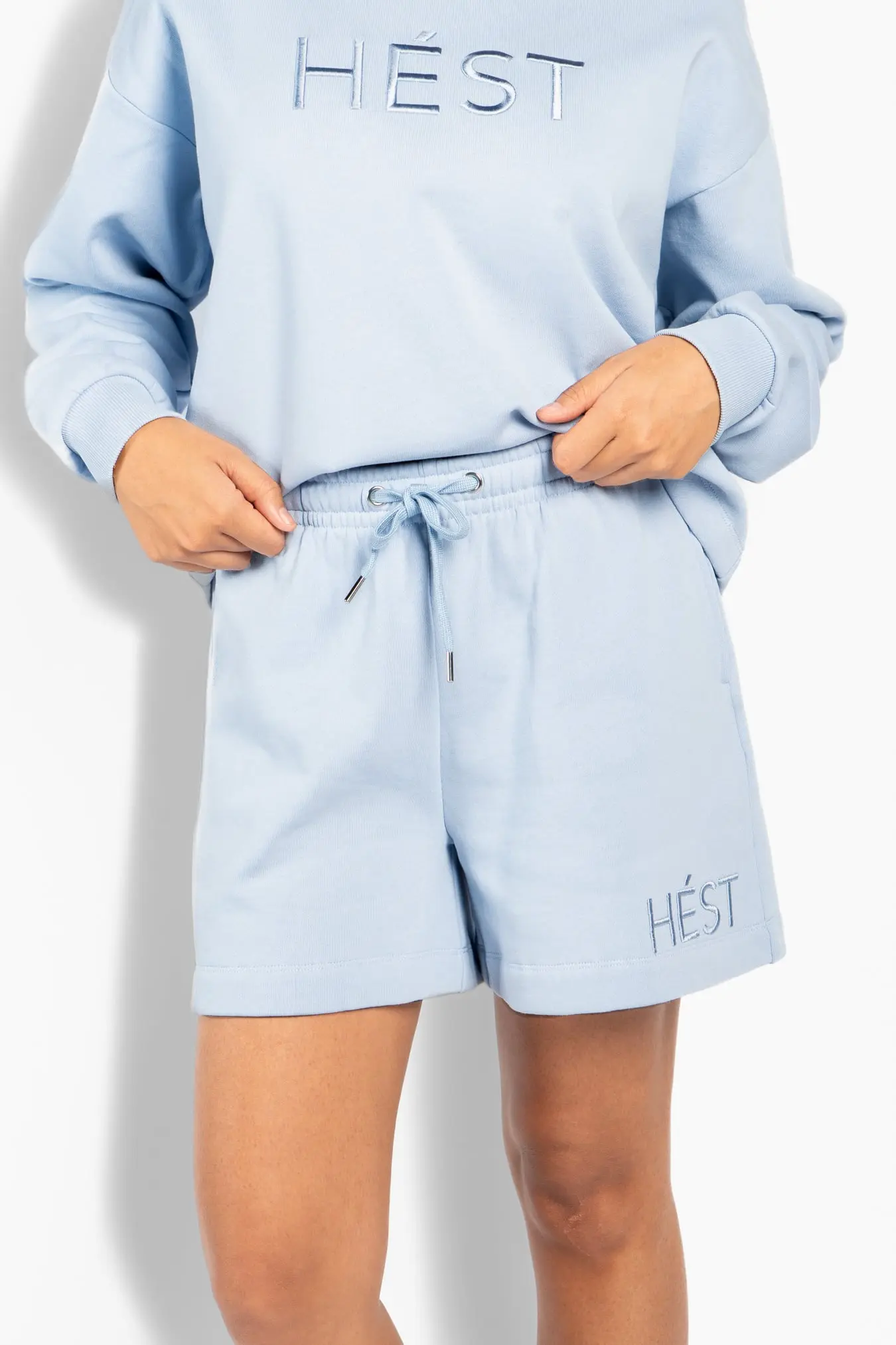 Avslappnade mjukisshorts designade med en ren, minimalistisk look och en bekväm resår i midjan med dragsko. Tillverkade av mjuk French Terry-bomull för en bekväm passform, har de en subtil HÉST-logotyp i tonal på benet. Enkla och mångsidiga – perfekta för avslappnade dagar.